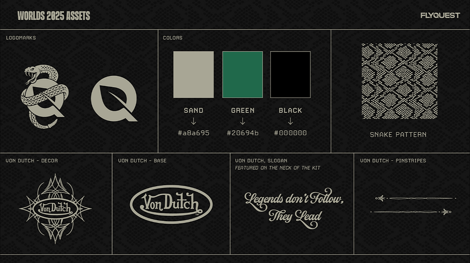FlyQuest's continued collaboration (see League is Dead) with Von Dutch for the League of Legends World Championship 2025 run in China.